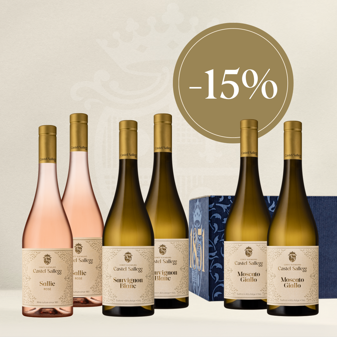2 x SALLIE Rosé IGT Vigneti delle Dolomiti 2024 - CASTEL SALLEGG + 2 x SAUVIGNON Alto Adige DOC 2023 - CASTEL SALLEGG + 2 x MOSCATO GIALLO Alto Adige DOC 2022 - CASTEL SALLEGG